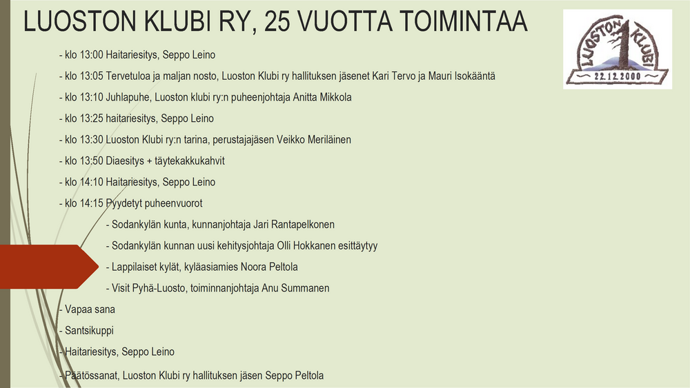 Veikko Meriläinen, yksi Luoston Klubin perustajajäsenistä, kävi läpi Klubin 25-vuotistaivalta. Paljon on tapahtunut vuosien varrella kuten oheisesta videosta voi kuulla.