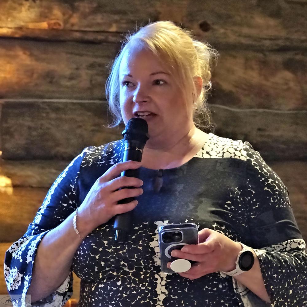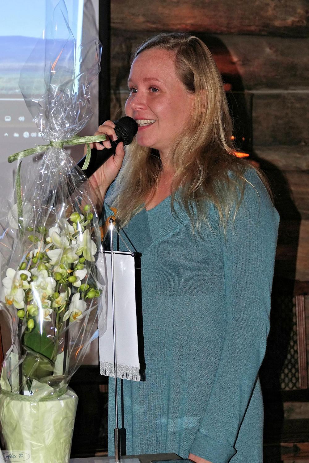 Visit Pyhä-Luoston ja paikallisten yrittäjien onnittelut toimitti toiminnanjohtaja Anu Summanen. Hän nosti esille toimintamme yhteisöllisyyden, kylän viihtyvyyden, tapahtumat ja toimintamme merkityksen myös matkailijoiden kannalta.