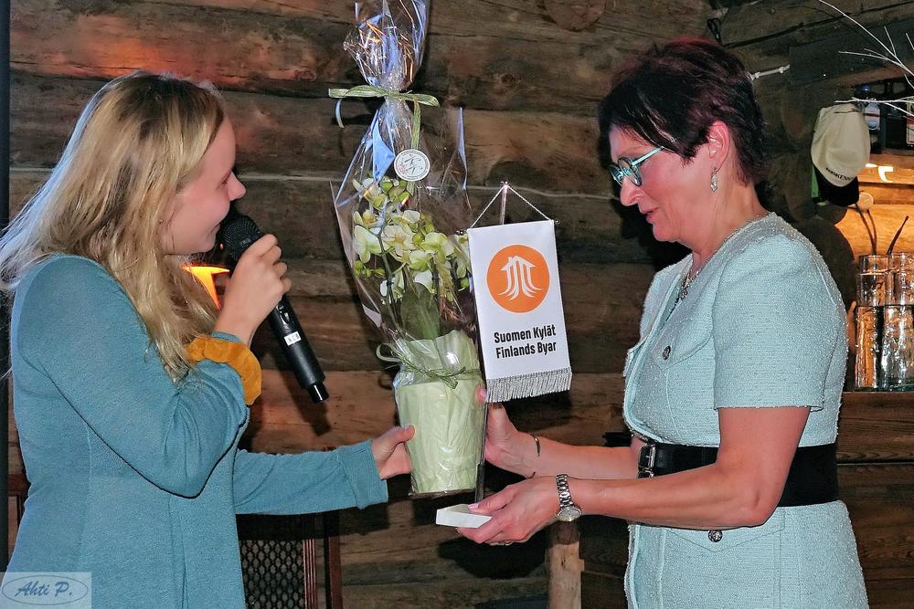 Lappilaiset kylät ry:n tervehdyksen toi Kyläkoordinaattori Noora Peltola ja hän luovutti klubille komean orkidean ja Suomen kylät-viirin.