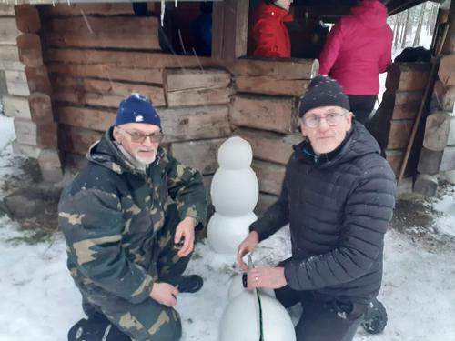 Paikalla oli talkoolaisia ilahduttavan paljon, noin 25 henkilöä. Lumitöiden ohella juttu luisti ja makkara maistui kuten kunnon talkoissa kuuluukin tapahtua.