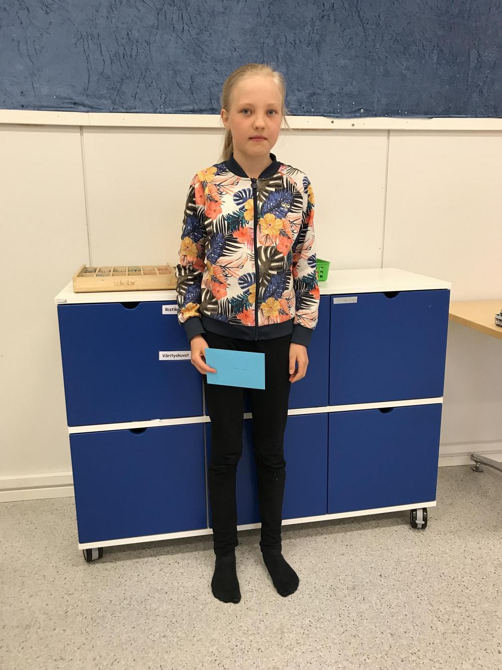 Stipendien saajat ovat 2. luokan oppilas Ilo Takala, 4. luokan oppilas Venla Leppänen ja 6. luokan oppilas Tuuli Takala.