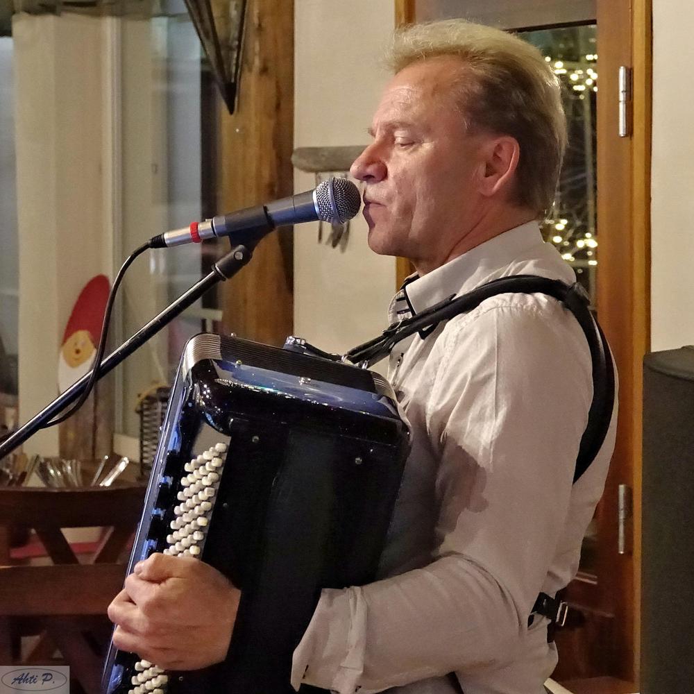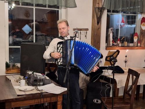 Elävää musiikkia illan varrella tarjoili meille hanuristi Jukka Lampela.