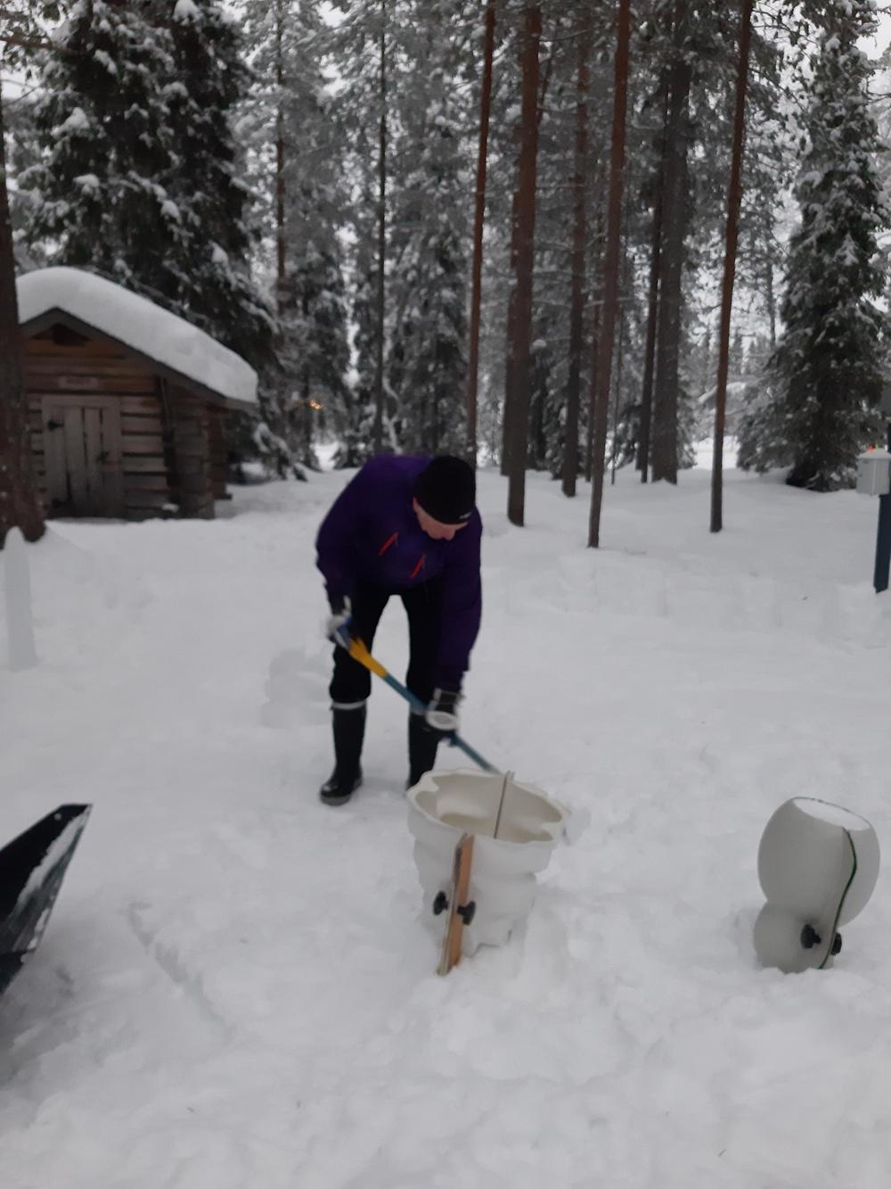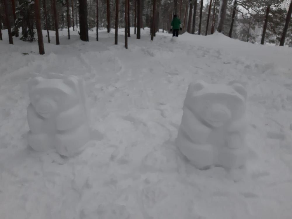 Jouluaaton aattona 23.12.2023 Ahvenlammen kodan äärelle kokoontui noin 15 klubilaista rakentamaan viimevuotiseen tapaan lumihahmoja. Tänä vuonna homma oli helpompaa kuin viime vuonna kun oli luntakin käytettävissä.