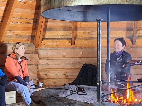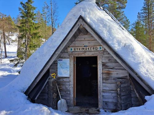 Hiihtäjillemme oli tarjolla auringonpaistetta siniseltä, pilvettömältä taivaalta ja luistava hiihtokeli. Leppoisaa tahtia hiihdeltiin joukolla Luoston keskuksesta Rykimäkeron kotaa kohti. Puolimatkan krouvissa, luontoladun varrella oli aurinkoisessa paikassa huoltopysäkki, jossa nostettiin Anittan johdolla kuoharilasit retkelle, retkeläisille ja toivotettiin kaikille hyvää Pääsiäistä.