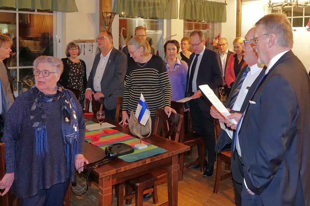 Yhteinen ilta päätettiin yhdessä komeasti laulettuun Maamme-lauluun, kuinkas muutenkaan.