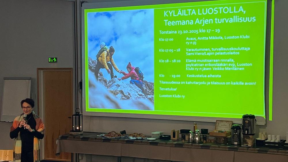 Luoston Klubin 23.10.2025 järjestämässä kyläillassa Tunturihotellin auditoriossa oli paikalla noin 20 osallistujaa.