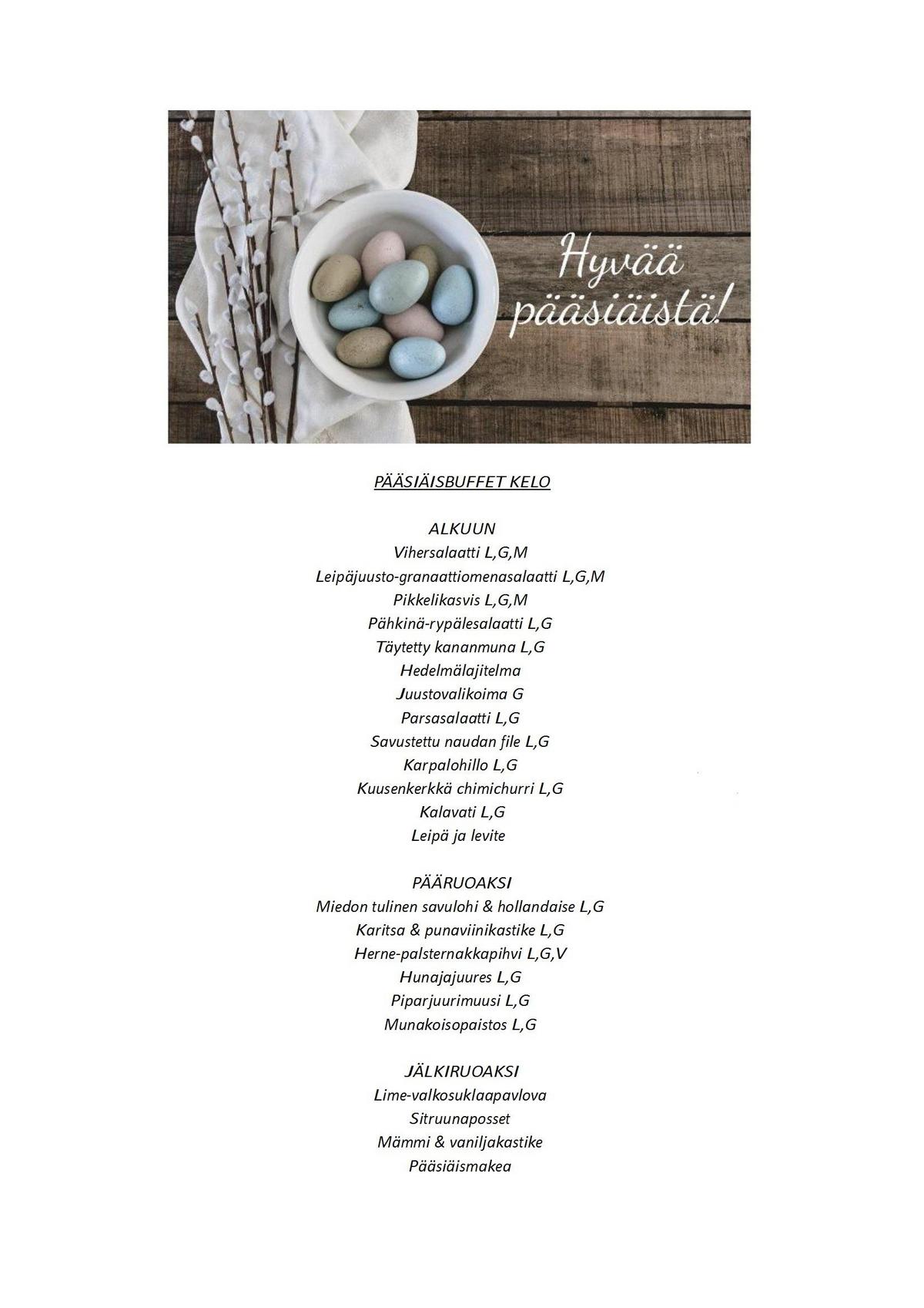 Pääsiäisbuffet Keloravintolassa lauantaina 4.4.2026 klo 18.00 alkaen.
